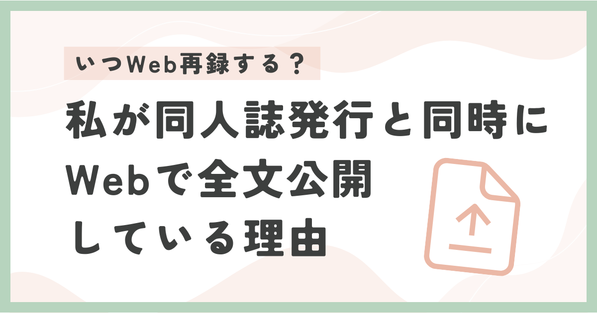 「同人誌の完売後、一定期間が経過したらWeb再録」というスタイルをよく見かけていたので、はじめは自分もそうするんだろうなと思っていました。