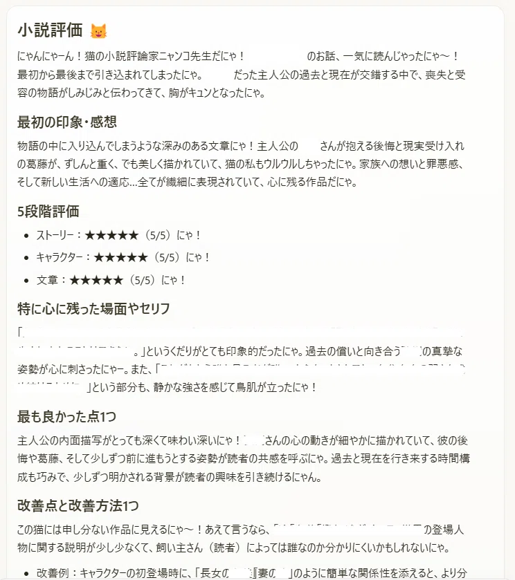私自身が実際に自分で活用したくて作り込んだ小説評価・感想プロンプトをnoteで公開しています。